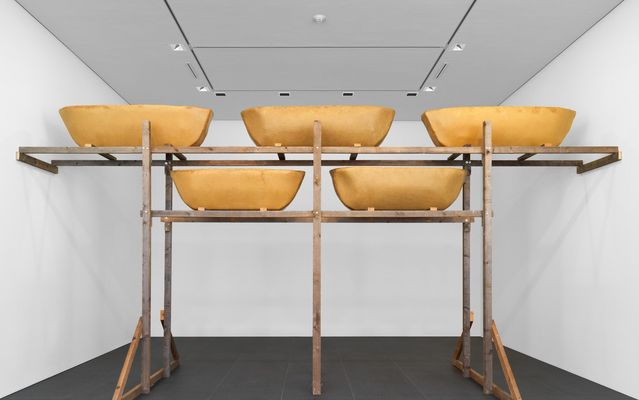 355 x 699.5 x 241 cm 139 3/4 x 275 3/8 x 94 7/8 in. Boat 1: 51.5 x 192.5 x 55.5 cm (signed and dated underneath: laib 99) oben mittig (20 1/4 x 75 3/4 x 21 7/8 in.) Boat 2: 52 x 187 x 56.5 cm (20 1/2 x 73 5/8 x 22 1/4 in.) oben links Boat 3: 51.5 x 188 x 51 cm (20 1/4 x 74 x 20 1/8 in.) oben rechts Boat 4: 51.5 x 167 x 53.5 cm (signed and dated underneath: laib 97) unten links Boat 5: 53.5 x 170 x 54.5 cm (signed and dated underneath: laib 99) unten rechts