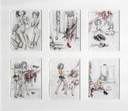 6 drawings each: 20.6 x 15.8 cm 6 drawings each: 8 1/8 x 6 1/8 in. Overall framed: 64 x 73 cm (25 1/5 x 28 3/4 in.)
