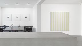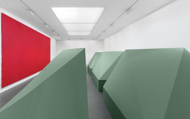 The idea for this exhibition stems from a movie still of the László Benedek film "The Wild One", 1953, in which you see Marlon Brando from behind with the initials BRMC on his leather biker jacket. These initials coincidentally correspond to the names of four Zürich-based collectors of Olivier Mosset works (Bischofberger, Ritter, Marenzi, Caratsch). Following the John Armleder exhibition "Olivier Mosset New Paintings" - which took place in the spring of 2009 and was an appropriation of the previous exhibition - it seemed interesting to show older works belonging to collectors connected to the Zürich art scene. The show was comprised of works from the '70s to the present including both sculptural and painted works.